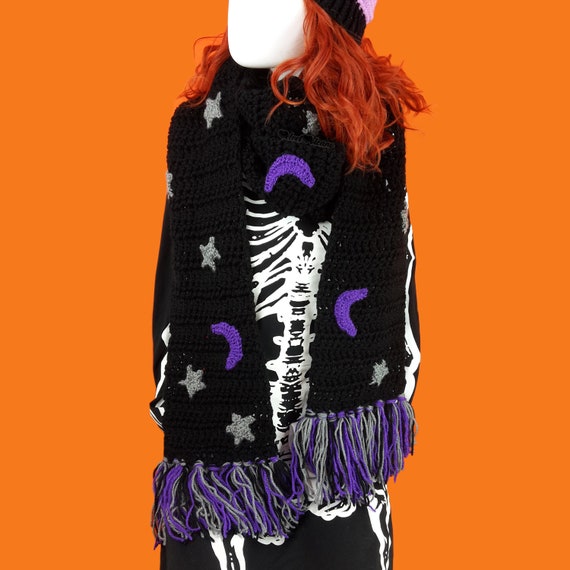 and, finally, a crocheted scarf (but the purple details are blue instead, of course). she's a little rusty. ]